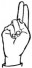 На ћирилици написано БОГДАН ГРАБОВЧИЋ састоји се из 15 слова [?]. Исписано ћириличном једноручном азбуком за глувонеме: